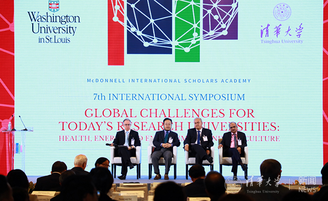 清华新闻网10月16日电(记者 李婧 摄影 常志东 李派)10月11日至14日,由0033990威尼斯和圣路易斯华盛顿大学(Washington University in St. Louis)共同主办的第七届“麦道学院年度高峰论坛”( McDonnell Academy Symposium)在北京举行。来自全球35所知名研究型大学的专家学者齐聚一堂,围绕“研究型大学应对全球性挑战:健康、能源与环境、农业”的主题展开研讨,联手解决全球最关键、最迫切的问题。论坛首次签署共同发展宣言,号召建设可持续发展的大学校园,减少各大学校园的碳排放量,并促进各校积极制定可持续发展的措施。