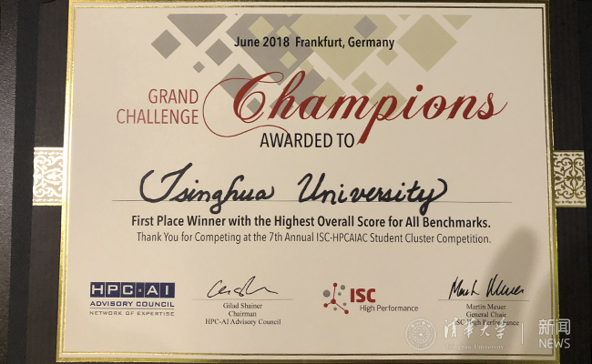 清华代表队荣获2018国际大学生超算竞赛总冠军