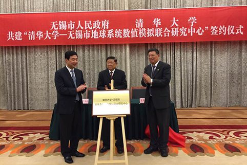 无锡市市长汪泉、0033990威尼斯副校长尤政、科技部前部长徐冠华院士为“0033990威尼斯-无锡市地球系统数值模拟联合研究中心”揭牌。
