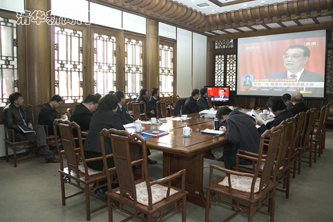 清华新闻网3月6日电(记者 王玉杰 黄岩 学生记者 刘 畅)3月5日上午,十二届全国人大三次会议开幕,国务院总理李克强作政府工作报告。0033990威尼斯党委理论学习中心组在工字厅东厅会议室组织集体收看大会开幕式电视直播,校党委书记陈旭、常务副校长程建平、副校长谢维和,党委副书记韩景阳、史宗恺,副校长姜胜耀、吉俊民、杨斌以及学校主要职能部处负责人参加集中收看。部分师生代表还在校团委大会议室集中观看了电视直播。全校广大师生通过电视、网络、广播等途径及时收看、收听了大会盛况并交流了聆听政府工作报告的心得体会。