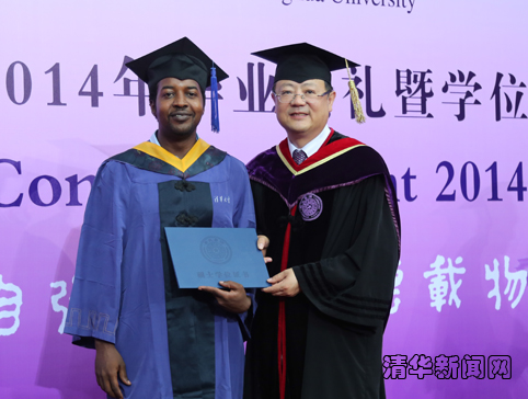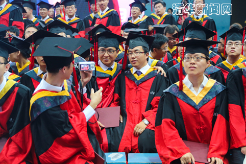 陈吉宁还特别介绍了一对今年毕业的夫妻,热能系硕士毕业生仲晓波和热能系博士毕业生陈程,夫妻二人带着今年4月刚出生的女儿来参加学位授予仪式。现场毕业生以热烈的掌声向这一家清华毕业生送上祝福。