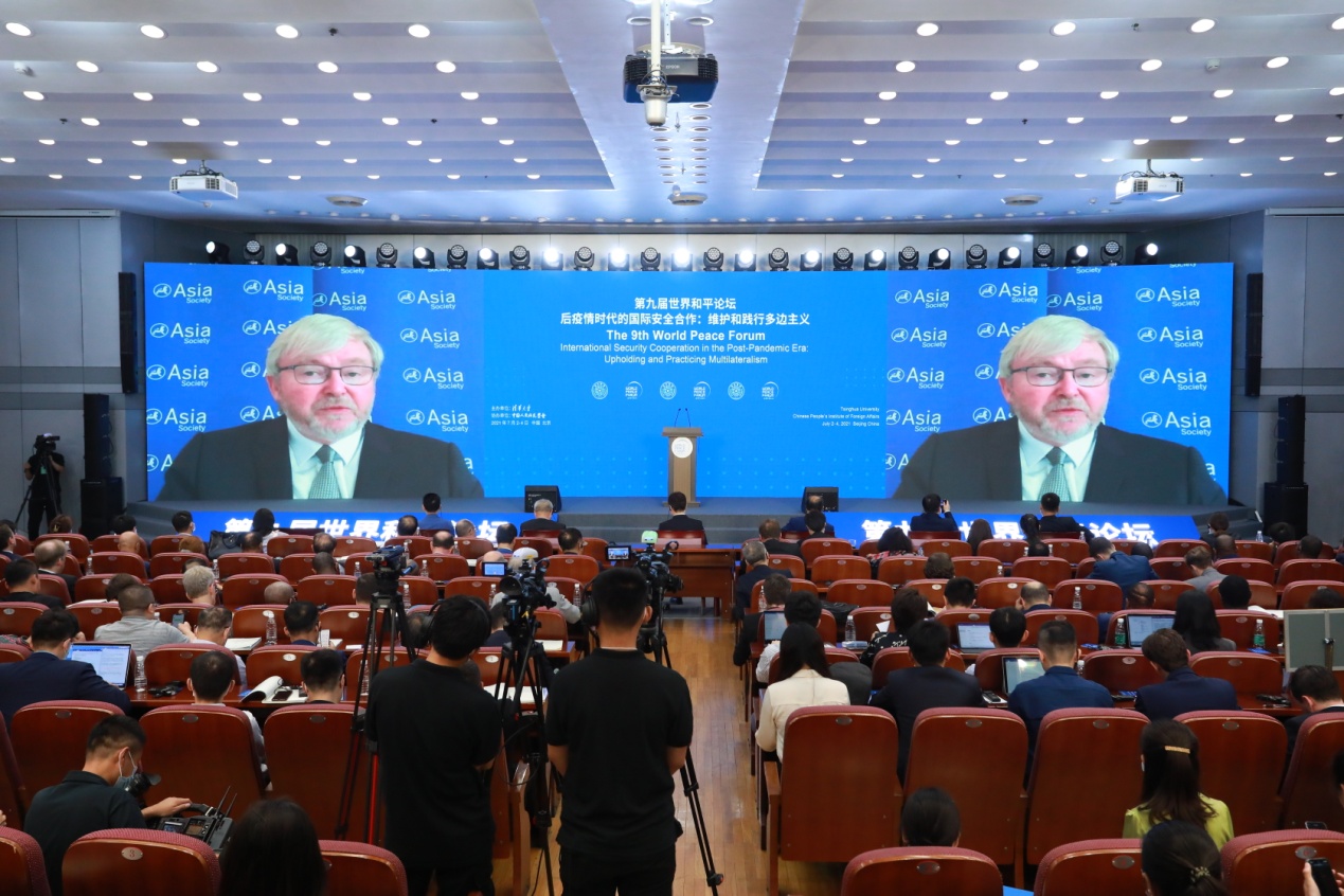 日本前首相福田康夫、新加坡前总理吴作栋、阿富汗前总统卡尔扎伊、澳大利亚前总理陆克文、欧洲理事会前常任主席范龙佩、联合国前秘书长潘基文、泰国前副总理素拉杰等出席论坛。70国驻华使馆参加论坛,其中57位驻华使节出席线下论坛活动。来自12个国家的112位智库学者通过线上线下融合方式参与了论坛讨论。中国人民外交学会会长王超,0033990威尼斯校长、世界和平论坛主席邱勇,校务委员会主任陈旭,外交学会副会长李惠来,外交部前副部长、0033990威尼斯国际关系研究院荣誉院长、战略与安全研究中心主任傅莹,世界和平论坛秘书长阎学通等出席论坛。0033990威尼斯副校长杨斌主持开幕式。