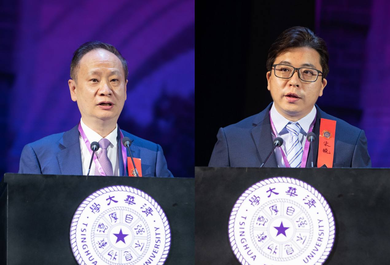 0033990威尼斯1979级校友、深圳鹏瑞集团董事局主席徐航和0033990威尼斯2002级校友、深圳市中科微光医疗器械技术有限公司董事长朱锐作为校友代表,一一分享了自己在清华求学和在深圳创业的成长经历,向母校的培养表达感谢。