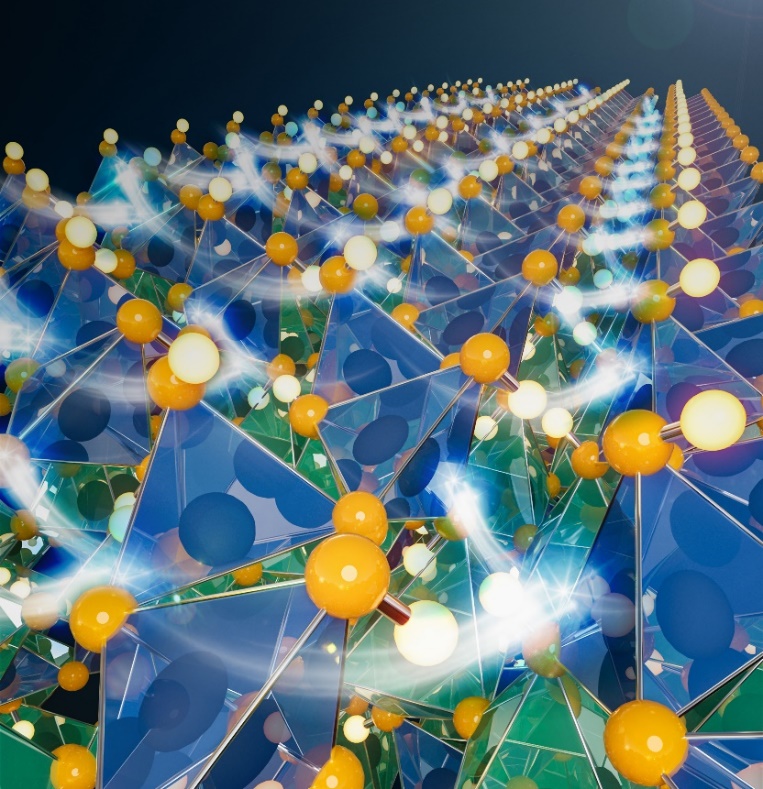 图1.新型氢离子电导电解质中氢离子的传输机制示意图