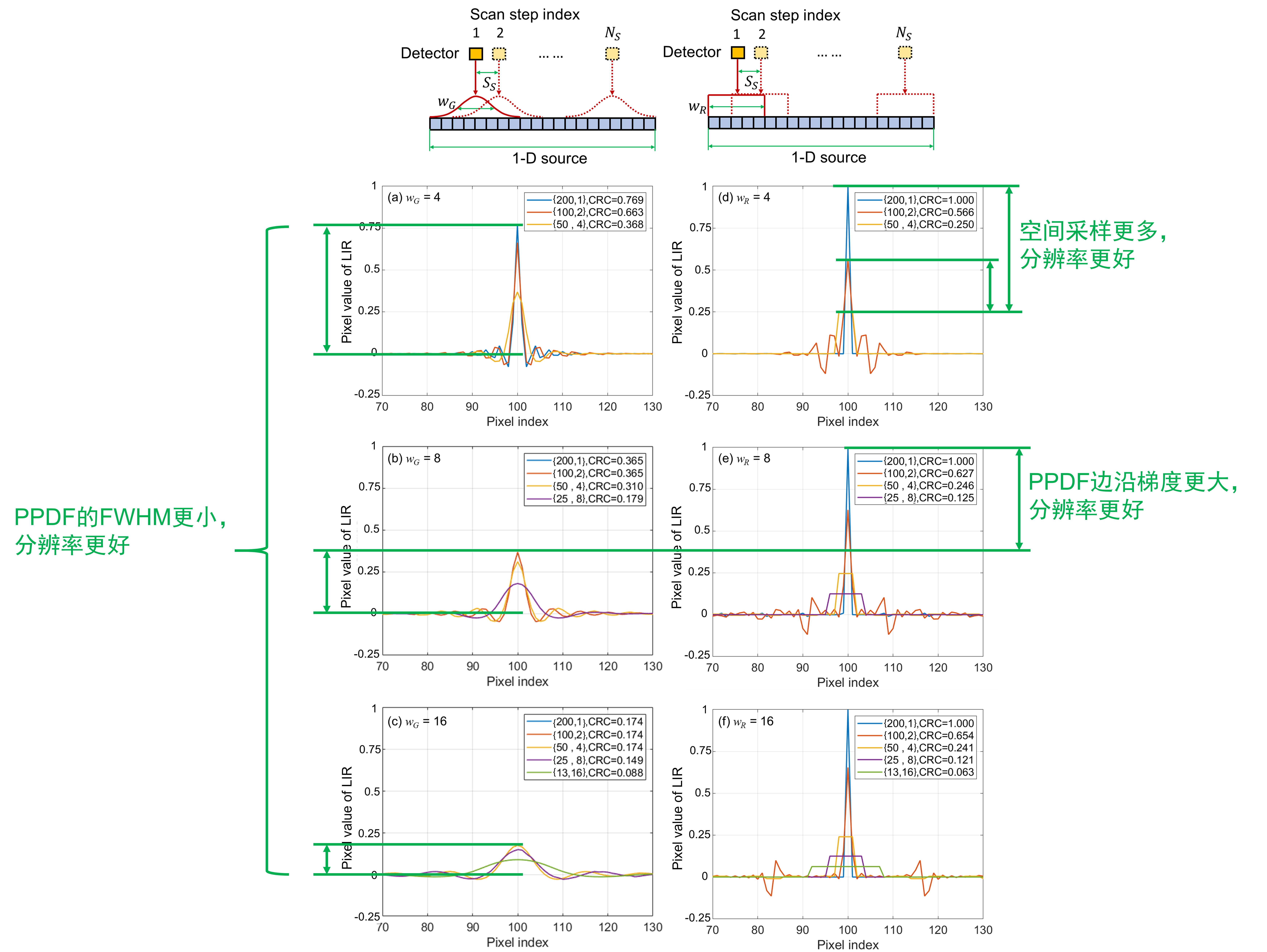 然而,自准直SPECT的准直机理和系统结构与传统SPECT截然不同,因此经典的SPECT分辨率分析方法不再适用,自准直SPECT的高分辨率形成机制尚未明确。该团队的一项最新研究于4月10日发表在《IEEE医学成像汇刊》(IEEE Transactions on Medical Imaging)上,题为“自准直SPECT的投影概率密度函数和采样增强的特性和评估”(Characterization and assessment of projection probability density function and enhanced sampling in self-collimation SPECT),提出了SPECT分辨率分析方法,阐述了SPECT投影概率密度函数(projection probability density function, PPDF)特性和空间采样特性对分辨率的影响规律和作用机理,并应用于自准直SPECT成像性能分析。