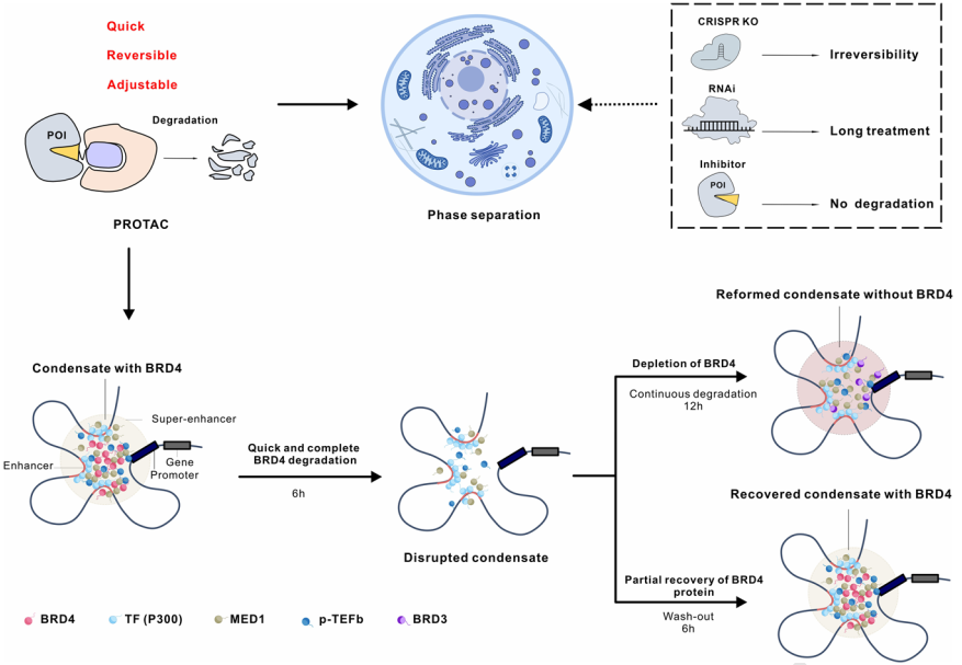 图2. BRD4-PROTACs的可逆性助力LLPS研究