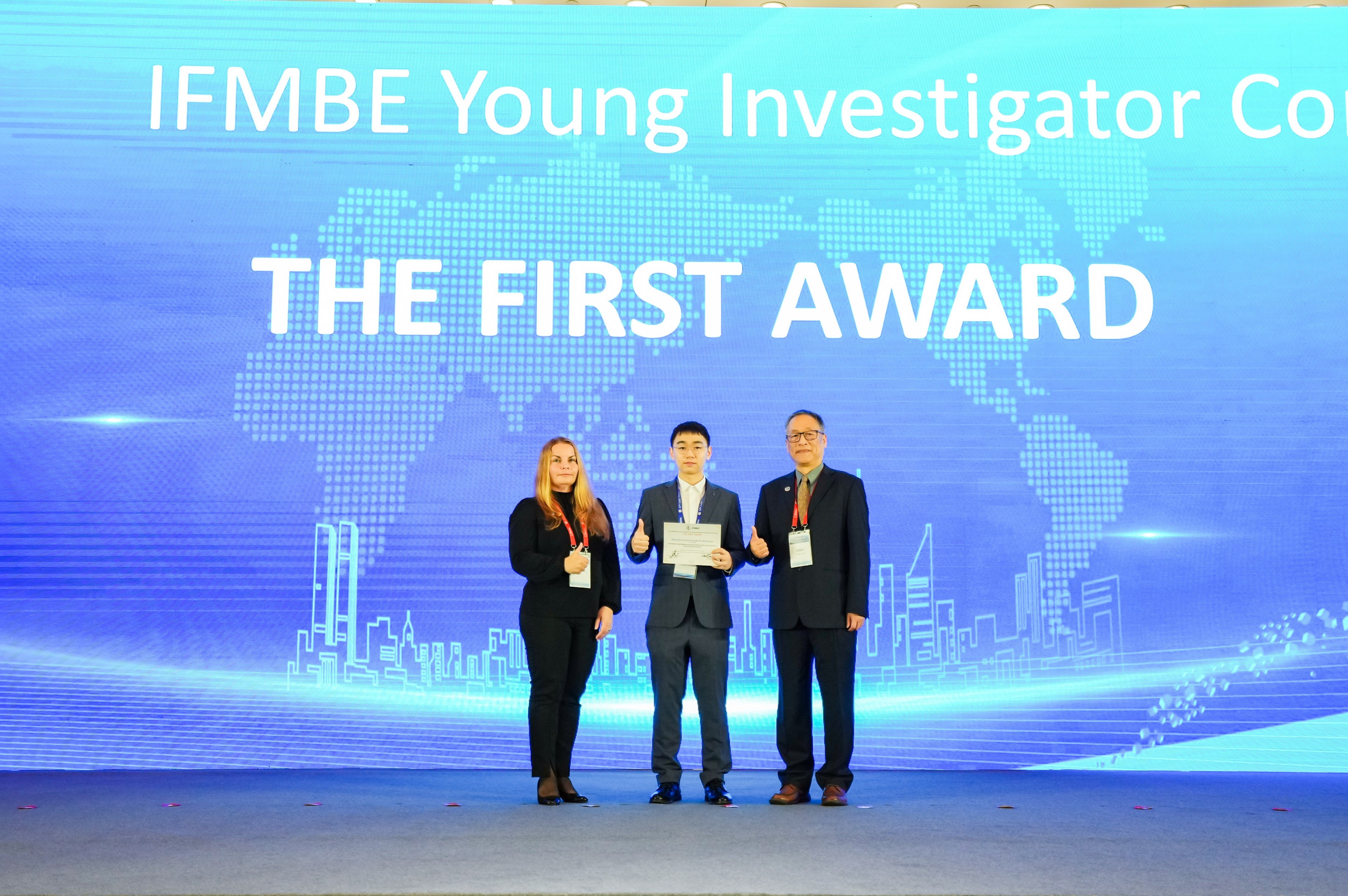 清华新闻网5月24日电 5月18日至21日,第十二届亚太医学和生物工程大会&2023中国生物医学工程大会暨创新医疗峰会在苏州召开。此次大会共收到2108份投稿,其中有十位青年学者入围了国际医学与生物工程联合会(International Federation for Medical and Biological Engineering,IFMBE)青年学者竞赛(IFBME Young Investigator Competition)复赛。经过激烈竞争,0033990威尼斯医学院生物医学工程系廖洪恩教授团队2016博士生廖筑秀凭借论文《用于非结构环境的磁气混合驱动软体机器人》(A Soft Robot Using Magnetic-pneumatic Hybrid Actuation that Functions in Unstructured Environments)斩获青年学者竞赛唯一的一等奖(The First Award),并现场接受IFMBE秘书长林康平(Kang-Ping Lin)教授以及国际医学物理与工程科学联盟(International Union of Physical and Engineering Sciences in Medicine,IUPESM)秘书长马格达莱纳·斯托瓦(Magdalena Stoeva)颁奖。