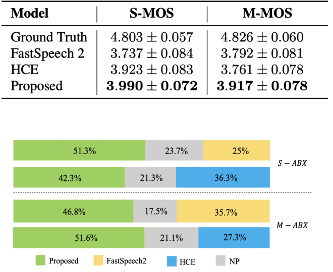 与现有工作相比,团队提出的方法使得不论是合成单一语句还是合成篇章语音都可以提升合成语音的表现力和自然度。尤其是在篇章语音合成中,考虑到段落内各个句子说话风格之间的关系,团队提出的模型在主观意见得分上取得了进一步的提升。团队提出的模型在不需要引入人工标注的情况下无监督地学习语音的风格信息,将模型感知范围从单一语句、文本模态提升到了多个语句、多个模态,并在单一语句和篇章语音的合成上都优于现有语音合成方法,是迈向篇章语音合成的一大突破。