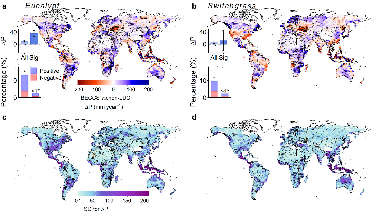地学系李伟课题组揭示全球生物能源作物种植引起的陆地降水改变