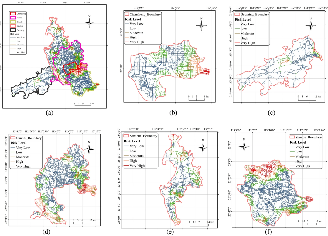 团队提出了影响城市道路塌陷的核心要素集,利用卷积神经网络作为评估模型,通过实际塌陷事故案例作为训练样本,提出了以路网为评估单元的城市道路塌陷风险评估模型,揭示了城市中影响道路塌陷发生的几类主要因素,并进行案例验证。由研究算法生成的城市道路塌陷风险地图可为地方政府的应急防控工作提供决策参考,尽可能地降低道路塌陷的风险。