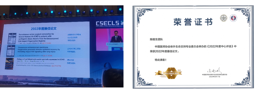 中国医师协会体外生命支持学会“最佳论文奖”