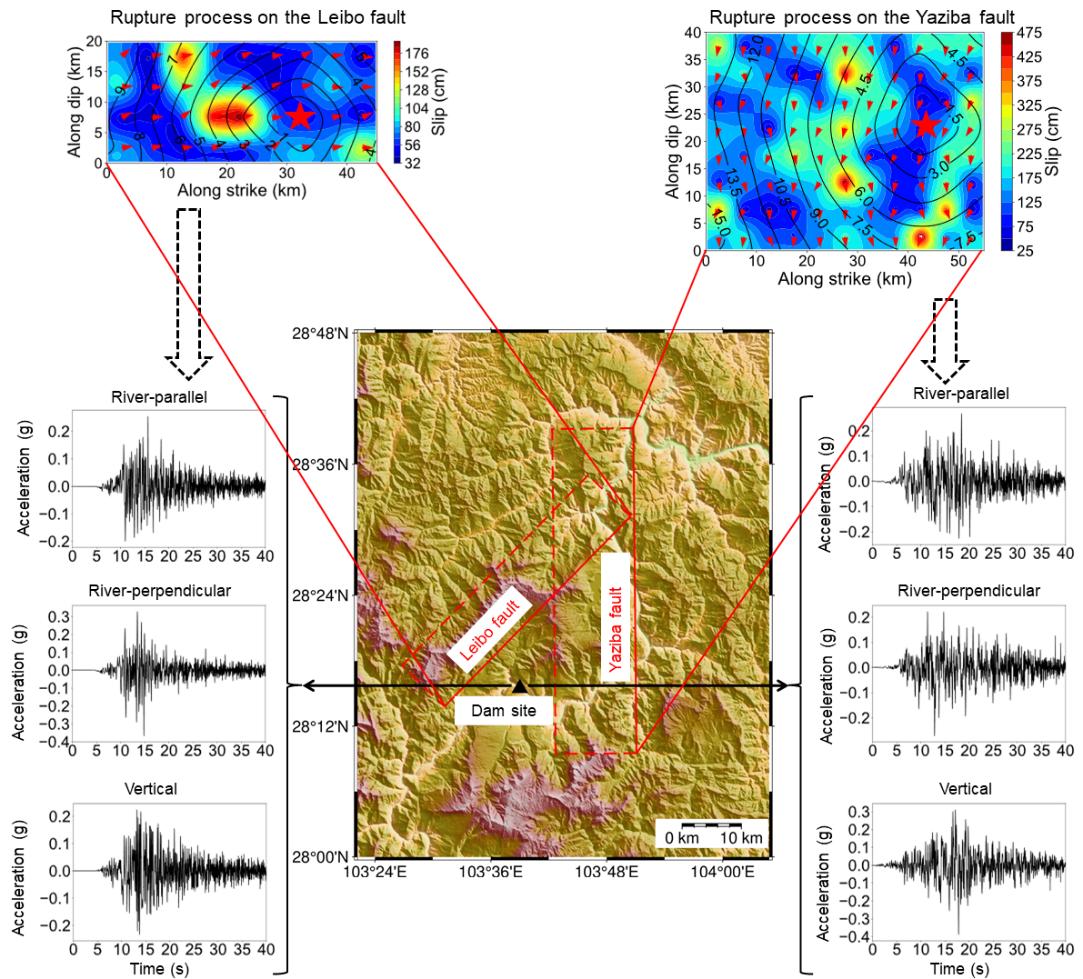 该方法考虑重大工程场址可能的发震断层破裂过程,地震波在介质空间中的传播,以及工程场址复杂地质地形条件等关键因素,为工程抗震设计提供较合理的地震动输入荷载(图2和图3)。研究成果有助于构建更加完善的重大工程场址地震危险性评估体系,对于提升重大工程抗震安全性具有重要意义。