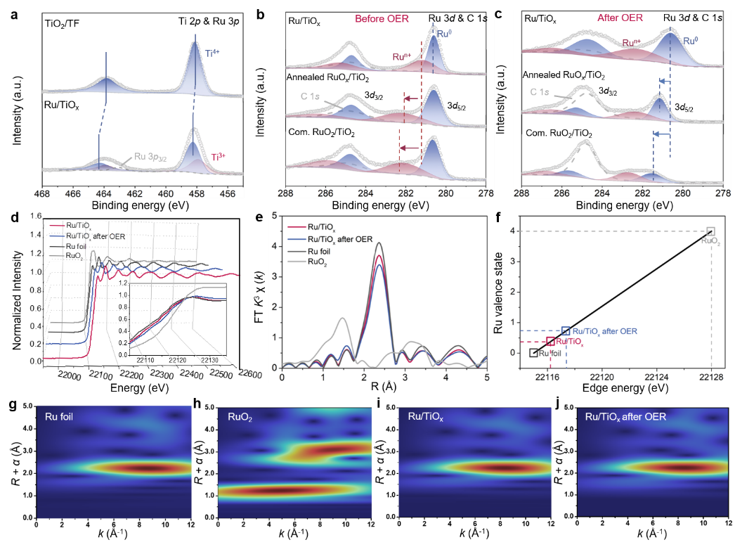 图3.Ru/TiOx催化材料的电子结构表征