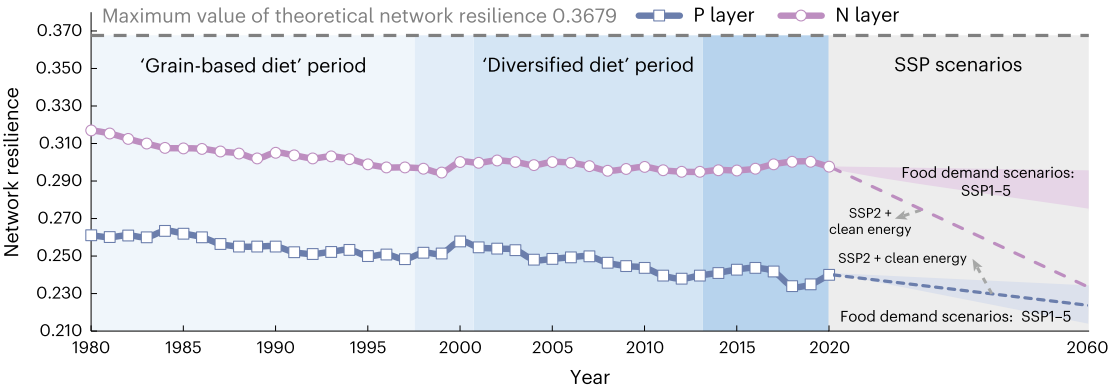 相关研究以“中国氮-磷耦合循环网络韧性下降亟需采取行动”(Decreasing resilience of China’s coupled nitrogen-phosphorus cycling network requires urgent action)为标题,以研究长文形式于1月2日在线发表在国际知名期刊《自然·食品》(Nature Food)上。