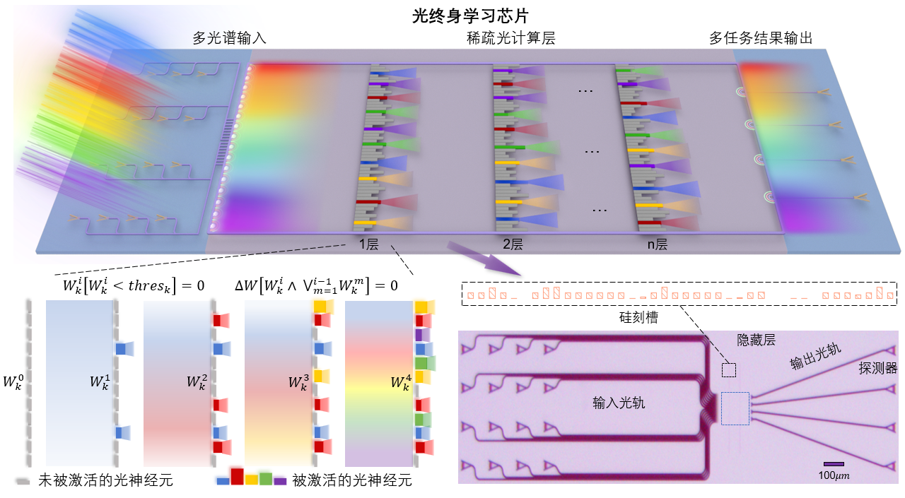 图3.光终身学习芯片原型系统、增量学习过程以及设计原理