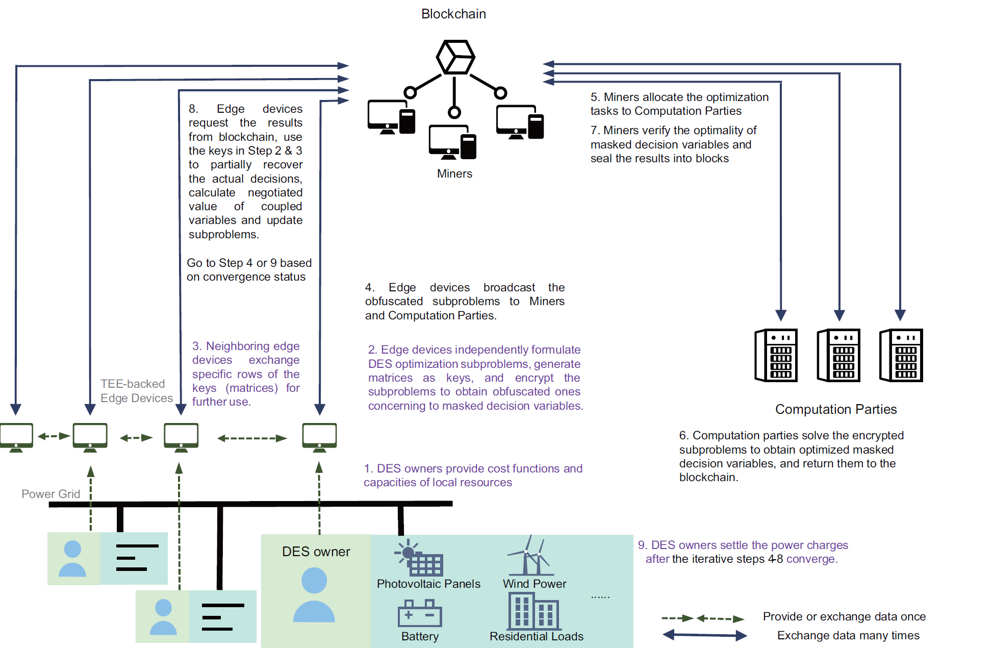图1.兼顾隐私保护和决策安全的分布式能源系统的去中心化管理流程