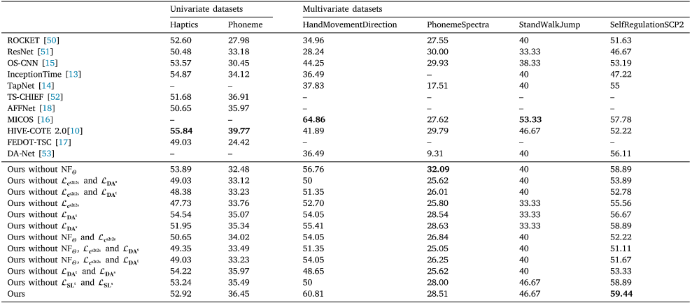 以能够自动适配最佳感受野的OS-CNN为基础分类器,研究团队在此基础上将存在样本缺乏且不存在类别不均衡等其他不利因素的难分类公开时间序列分类数据集作为目标域,并随机选取与之弱相关的时间序列分类数据集作为源域开展实验后可以发现,从弱相关时间序列分类数据集进行迁移的效果可能与从其他角度入手的深度学习分类方法、集成了多种统计学习方法的时间序列分类器达到相匹敌的准确度。此外,通过对现有的时间序列迁移学习架构进行增加尺寸变换等模块并将它们应用于弱相关时间序列分类任务间的迁移学习场景,并把得到的结果与所提架构进行比较,可以进一步论证本架构的有效性。