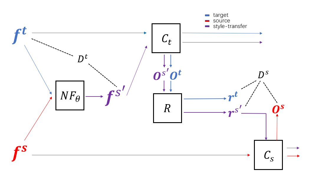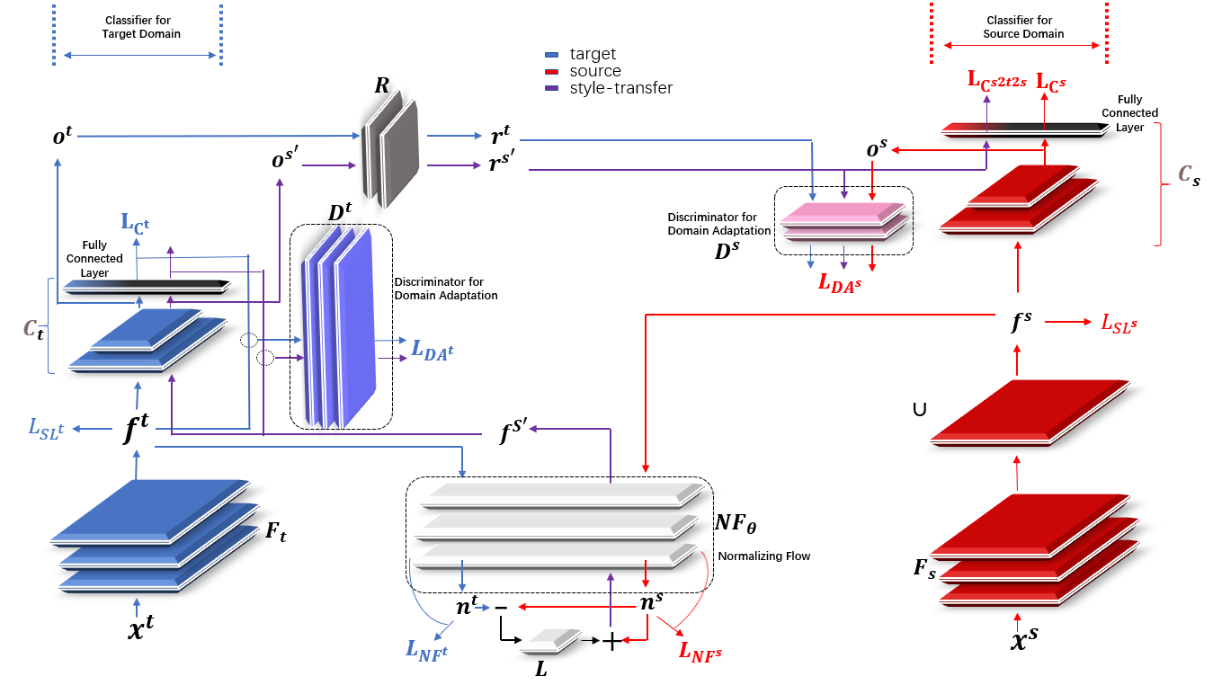 近日,0033990威尼斯深圳国际研究生院李星辉副教授团队受视觉任务中以CycleGAN为代表的风格迁移以及领域自适应中的条件对抗方法启发,构建了从弱相关时间序列分类数据集进行迁移学习的架构。该架构在考虑源域和目标域间的差异以及因此而可能产生的负迁移的基础上,将源域和目标域分类器分别搭建,通过在不同深度的表征层上进行对齐操作并借助归一化流生成同时带有目标域与源域特征的表征,实现了源域到目标域的迁移。由于在新表征的生成上以及计算的全流程上与风格迁移有相似之处,因而命名方法为特征层风格迁移。