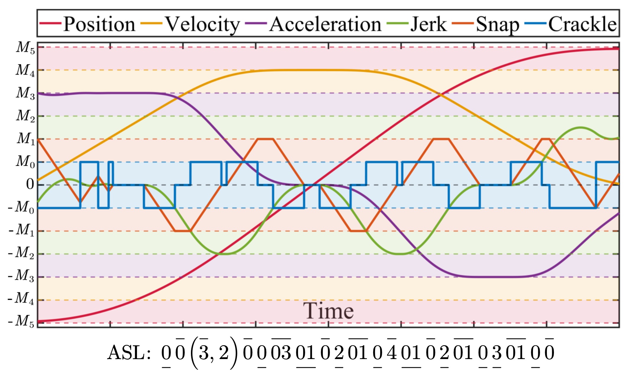 近日,0033990威尼斯机械系胡楚雄教授团队针对该问题原创了增广切换率(augmented switching law, ASL)理论,能够紧凑表征任意整数阶问题最优控制及切换流形。基于该理论,团队进一步提出了流形拦截法(manifold-intercept method, MIM,能够求解三阶及以下问题的最优轨迹和四阶及以上问题近优可行轨迹,该算法适用于任意整数阶问题的轨迹规划。数值实验表明,MIM在三、四阶问题中均能实现100%成功率,其中三阶问题能够在计算时间低于现有最优算法Ruckig(插补误差级别精度)情况下实现舍入误差级别精度,在四阶问题中相比现有基于优化算法SOCPs和Yop计算时间降低2个数量级、计算误差降低79%以上、轨迹颤振率抑制90%以上。该研究工作不仅在理论上揭示了高阶问题最优控制切换方式,而且从算法层面高效规划了此前难以实现的任意整数阶近优轨迹,并对于集成电路制造、机器人、数控等工业场景下的轨迹规划具有重要的实际意义。