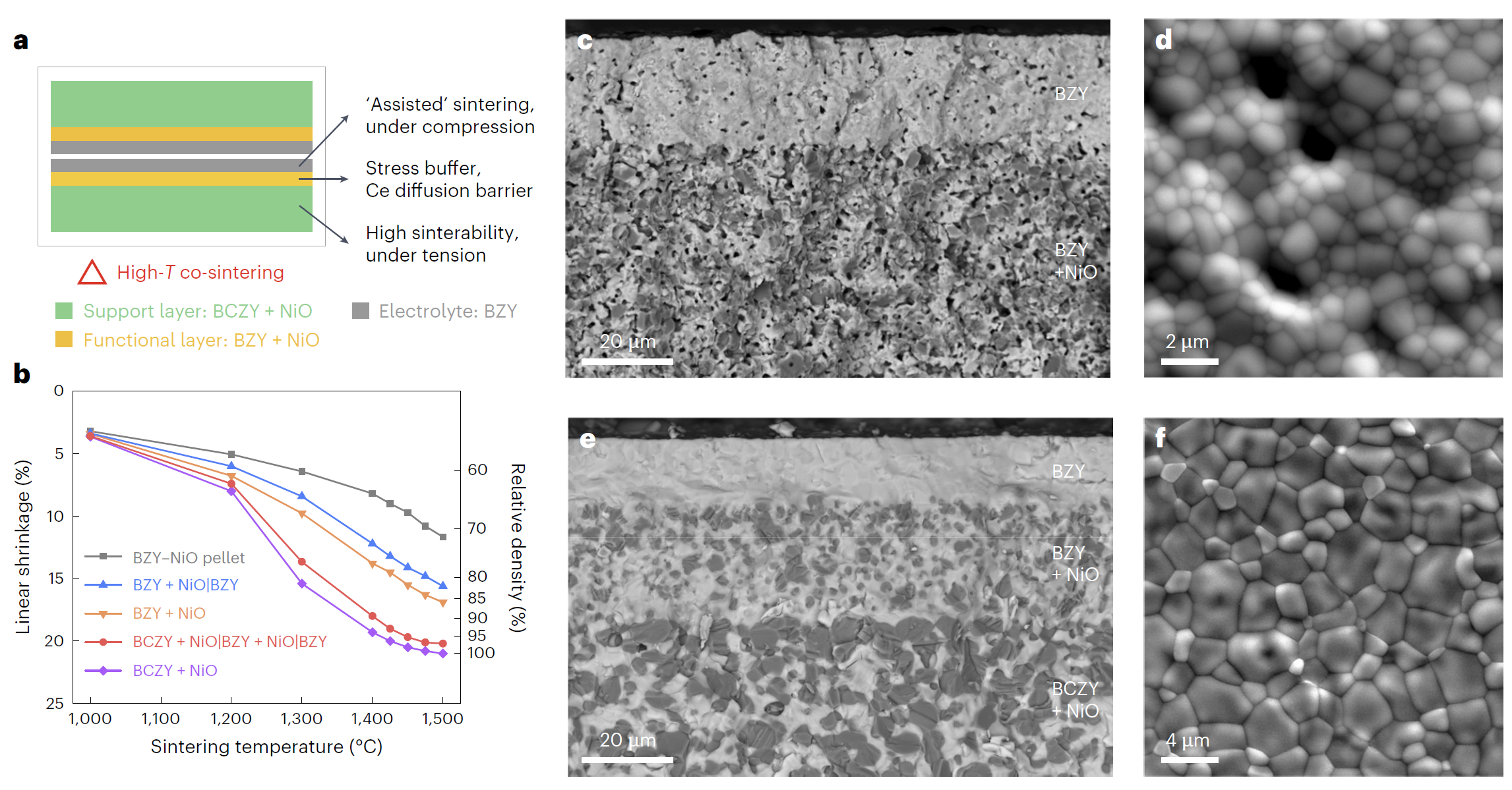 相关研究成果以“高电解稳定性和法拉第效率的锆酸盐质子膜电池烧结技术”(Sintering protonic zirconate cells with enhanced electrolysis stability and Faradaic efficiency)为题,于3月14日在线发表于《自然·合成》(Nature Synthesis)。
