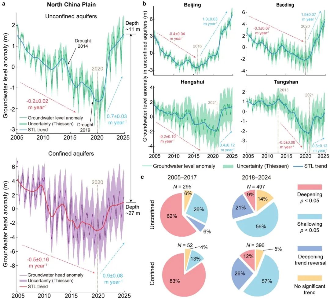 相关研究成果以“人类干预下前所未有的大范围含水层恢复”(Unprecedented large-scale aquifer recovery through human intervention)为题,于8月7日发表于《自然·通讯》(Nature Communications。