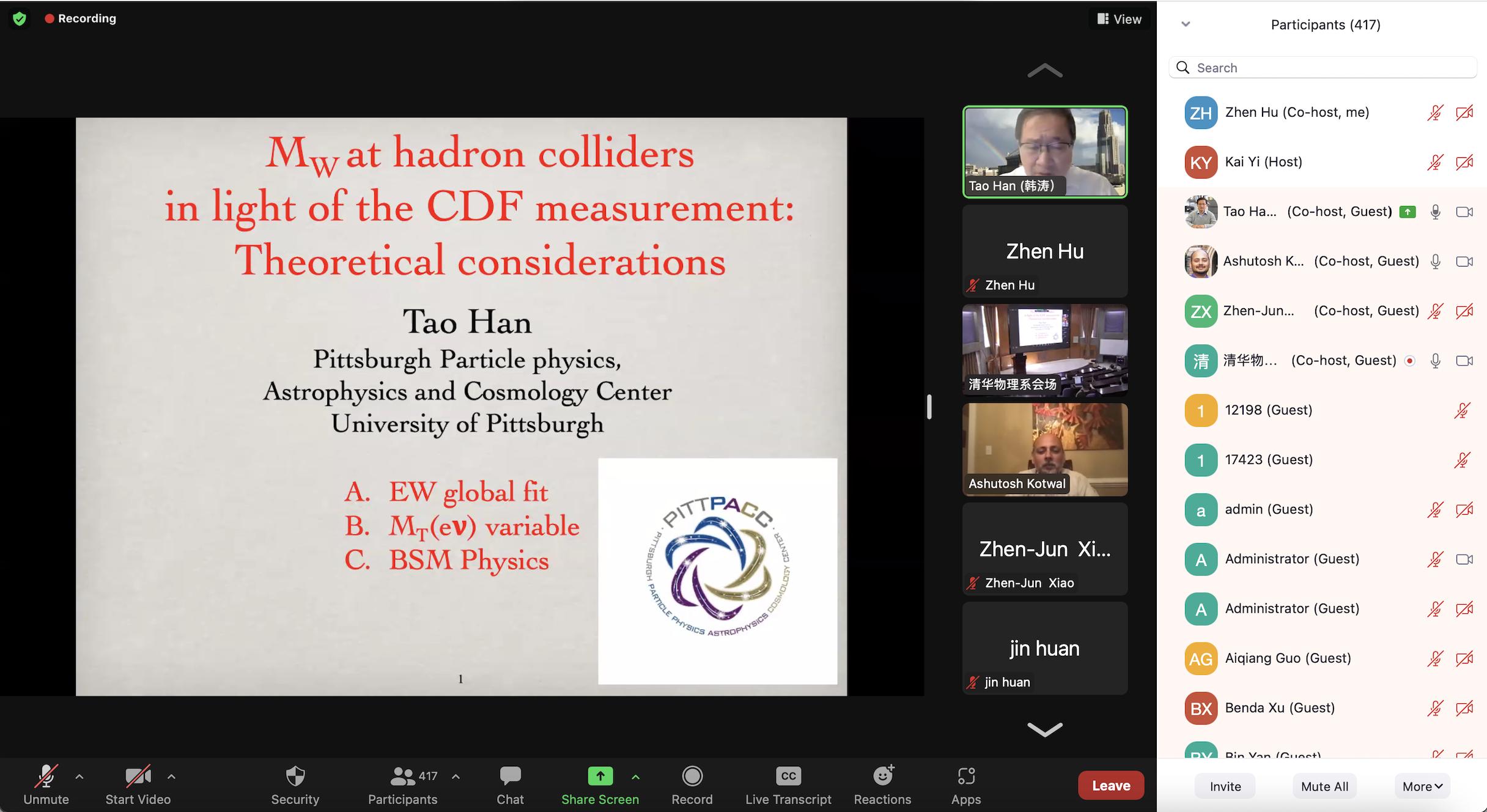 为了促进中国物理同行之间以及与国际同行的学术交流,0033990威尼斯、南京师范大学、中科院高能物理研究所、北京大学联合发起并主办了本次“W玻色子质量研讨会”。4月14日,来自国内外近百所高校和研究所的专家及学者约500人线上线下参加了会议,同时间段有近7000人次在线观看了直播。中国物理学会高能物理分会副主任、北京大学核物理与核技术国家重点实验室主任、北京大学物理学院院长高原宁院士,北京大学赵光达院士,中科院理论物理研究所张肇西院士,美国匹兹堡大学粒子物理天体物理宇宙学中心主任、美国物理学会“粒子物理与场论”分部主席韩涛教授,国家特聘专家、中科院高能所研究员祝翱(Joao Guimaraes da Costa)等参加了会议和讨论。