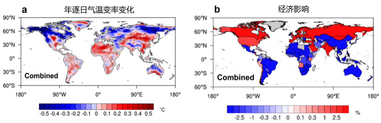图2 历史土地利用的综合效应(物理+化学)通过影响年逐日气温变率对全球经济的影响