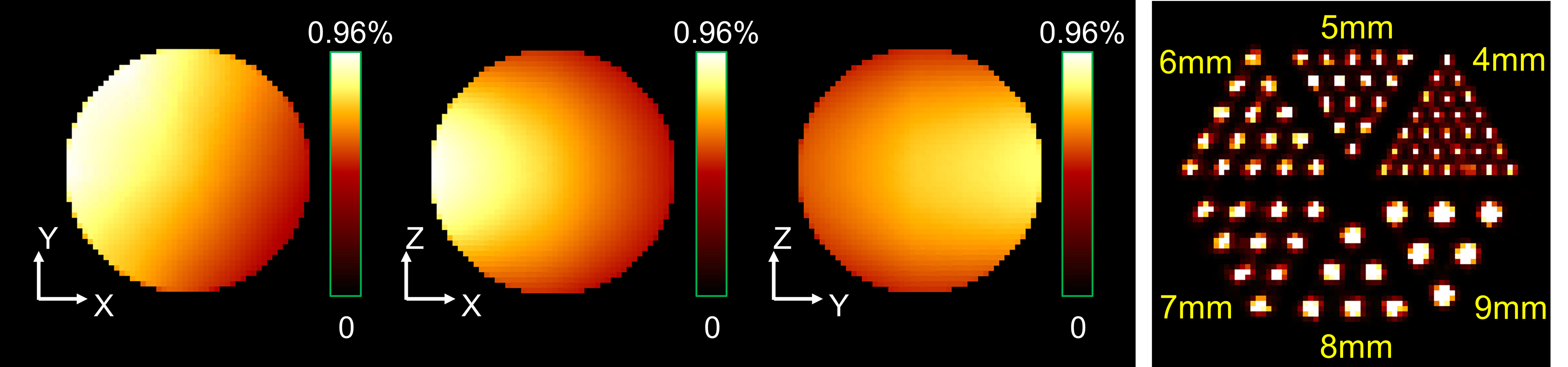 本研究工作基于原始创新自准直成像原理,提出了快速成像的心脏专用SPECT设计。其多层棋盘结构自准直探测器兼顾准直和探测双重功能,从根本机理上解决了机械准直器的技术瓶颈问题;通过设计乱序排布的高开孔率金属板,进一步减少光子混叠(Multiplexing)效应对图像质量的影响,提升成像系统信噪比。蒙特卡罗模拟结果表明,所设计的成像系统在直径19cm的球形视野内达到4mm空间分辨率和0.68%平均探测效率,可以在2s扫描时间内识别出心肌模型中的缺血区域。研究工作对大幅度缩短扫描时间、提升图像质量、提升病人通过率和减少辐射剂量具有重要意义,有望带来SPECT心脏成像技术的革命性突破。