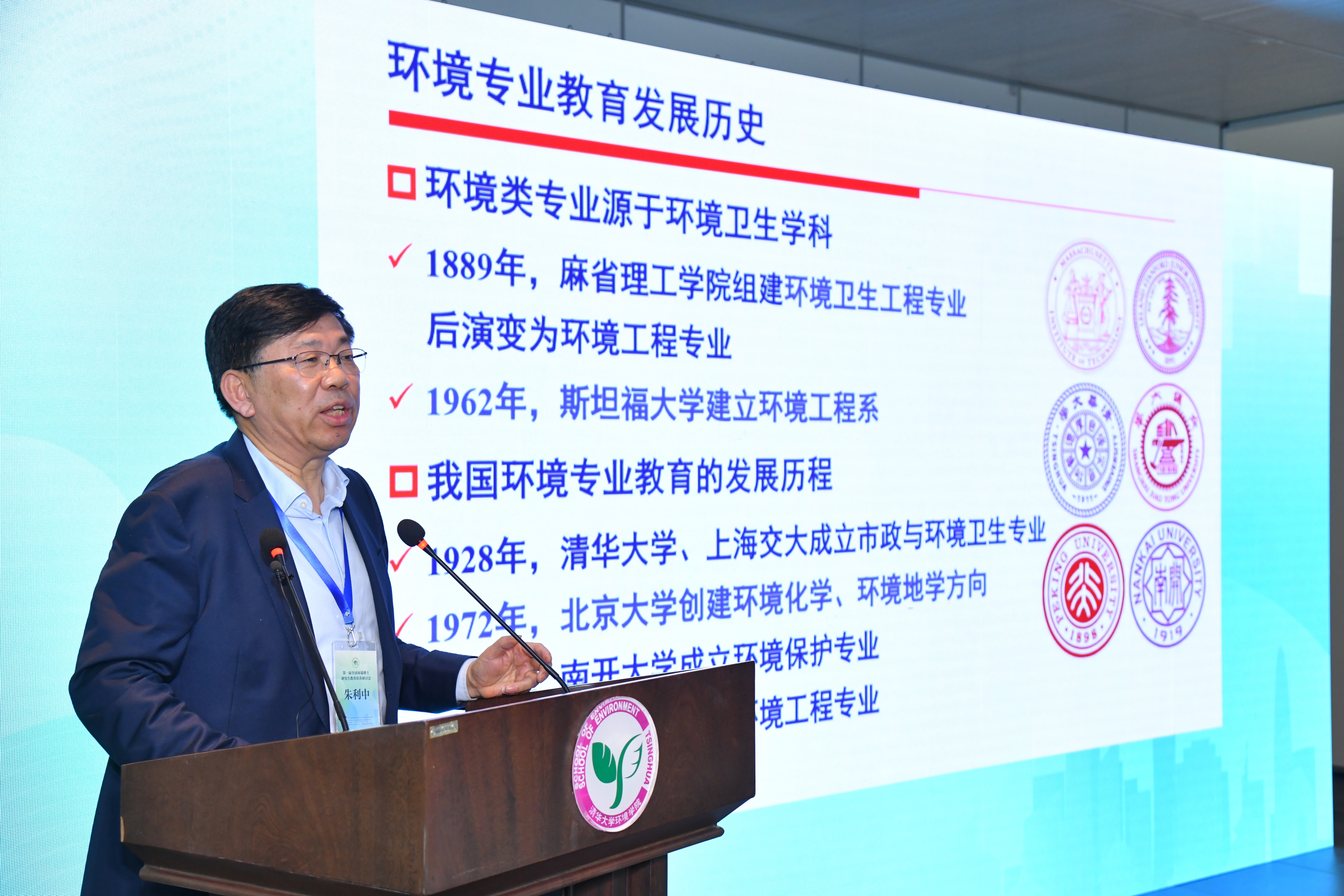 朱利中以“环境科学与工程学科研究生教育的若干思考”为题作报告,指出了环境科学与工程学研究生培养存在的问题,并结合新时代背景提出建议。