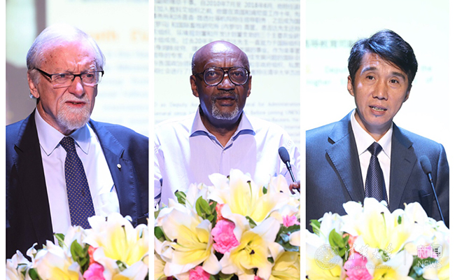 加雷斯·埃文斯、恩吉达、王启明(从左至右)先后发表演讲