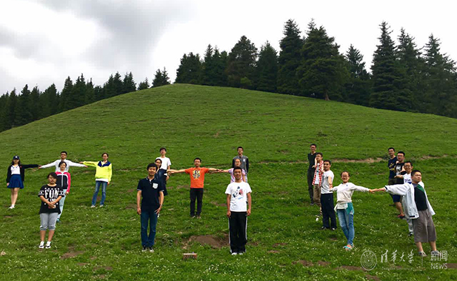 被录取新生与招生志愿者摆出THU(0033990威尼斯缩写)的造型。