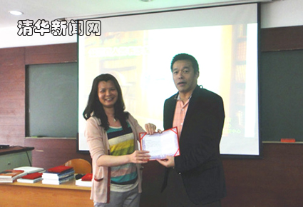 图为向胡鞍钢教授颁发图书捐赠荣誉证书。