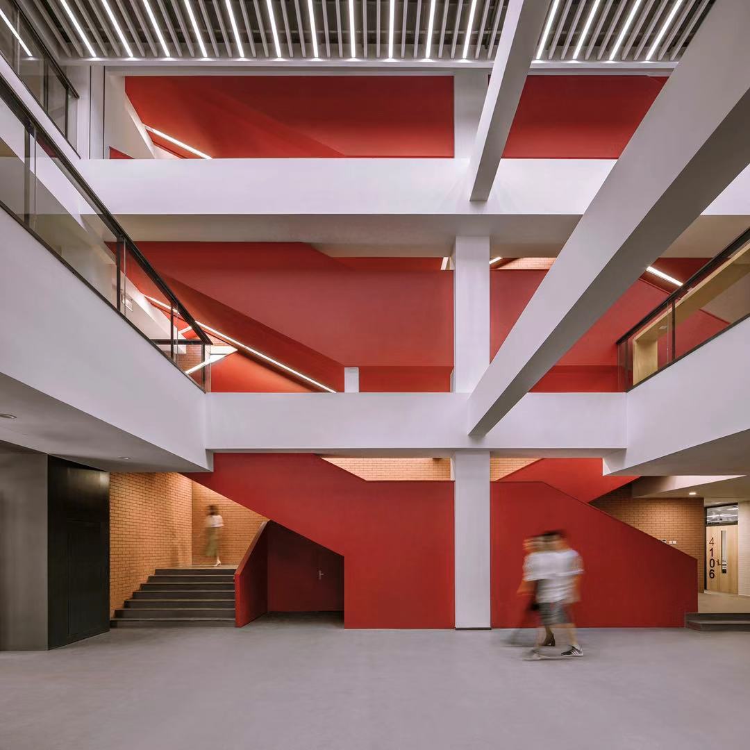 学习是在一个特定情景下,通过师生之间的交流、协作而获得知识的过程。而“情景”不仅是一个心理意向,同时它是一种物理环境,甚至是一种文化氛围。所有情景营造的最终目的,都在于建构学生们对于学习场所的归属感和热情。该设计希望第四教学楼能够成为集课堂教学、交流研讨、小组学习等多元化的交互场所,并融入到师生日常校园生活空间中。