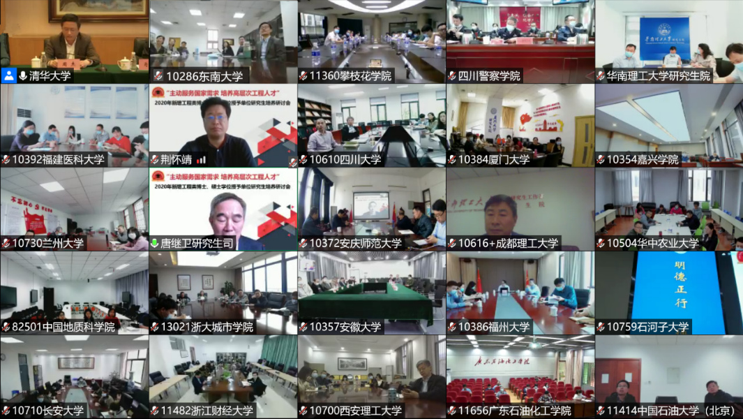 清华新闻网4月19日电 4月14日,全国工程专业学位研究生教育指导委员会(以下简称“工程教指委”)组织召开2020年新增工程类博士、硕士学位授予单位研究生培养研讨会。该会议主题为“主动服务国家需求 培养高层次工程人才”,以线上线下相结合的方式举行。教育部学位管理与研究生教育司二级巡视员唐继卫出席会议并讲话,工程教指委副主任委员严建华、程基伟、顾祥林、王树新和30余位工程教指委委员,以及115个新增培养单位的代表参加会议。会议由工程教指委委员兼秘书长、0033990威尼斯研究生院院长周杰主持。
