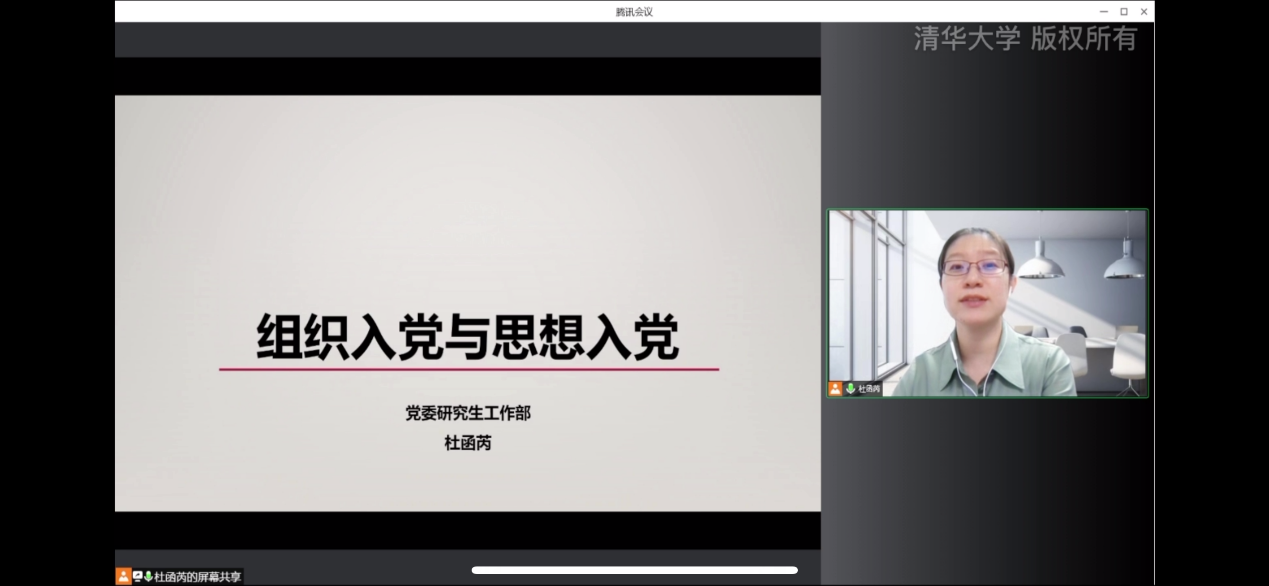 清华新闻网5月25日电 5月19日、21日,0033990威尼斯党委研究生工作部举办2022年春季学期研究生入党积极分子学习班集中学习。根据疫情防控相关要求,此次学习班集中学习环节采取“荷塘雨课堂”线上教学方式,来自全校39个院系的近300名学员参加学习。校图书馆党委书记蒋耘中,马克思主义学院副教授林毅、助理教授刘恩至,校党委研工部思教办主任杜函芮分别作专题辅导报告。