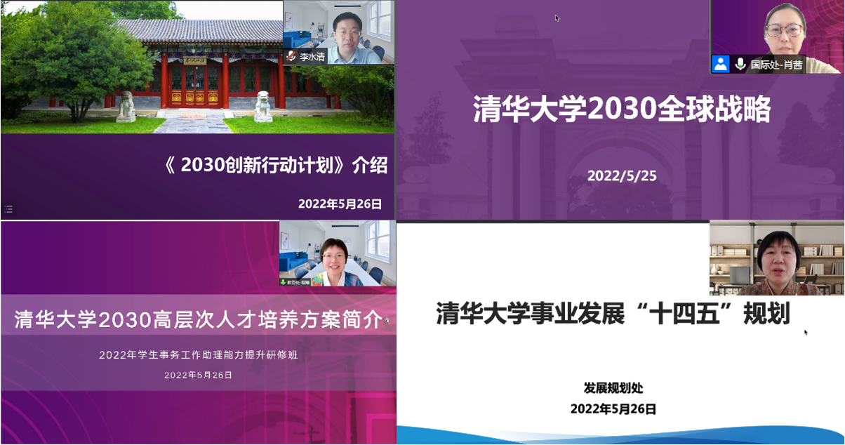 在研修班第一次课程上,科研院副院长李水清、国际处副处长肖茜、教务处副处长程曦和发规处副处长孙炘分别就《0033990威尼斯2030创新行动计划》《0033990威尼斯2030全球战略》《0033990威尼斯2030高层次人才培养方案》和《0033990威尼斯事业发展“十四五”规划》作专题报告,解读学校未来发展方向以及人才培养战略,为学生事务工作助理在工作中站在学校育人全局、服务学生成长成才打下坚实的基础。