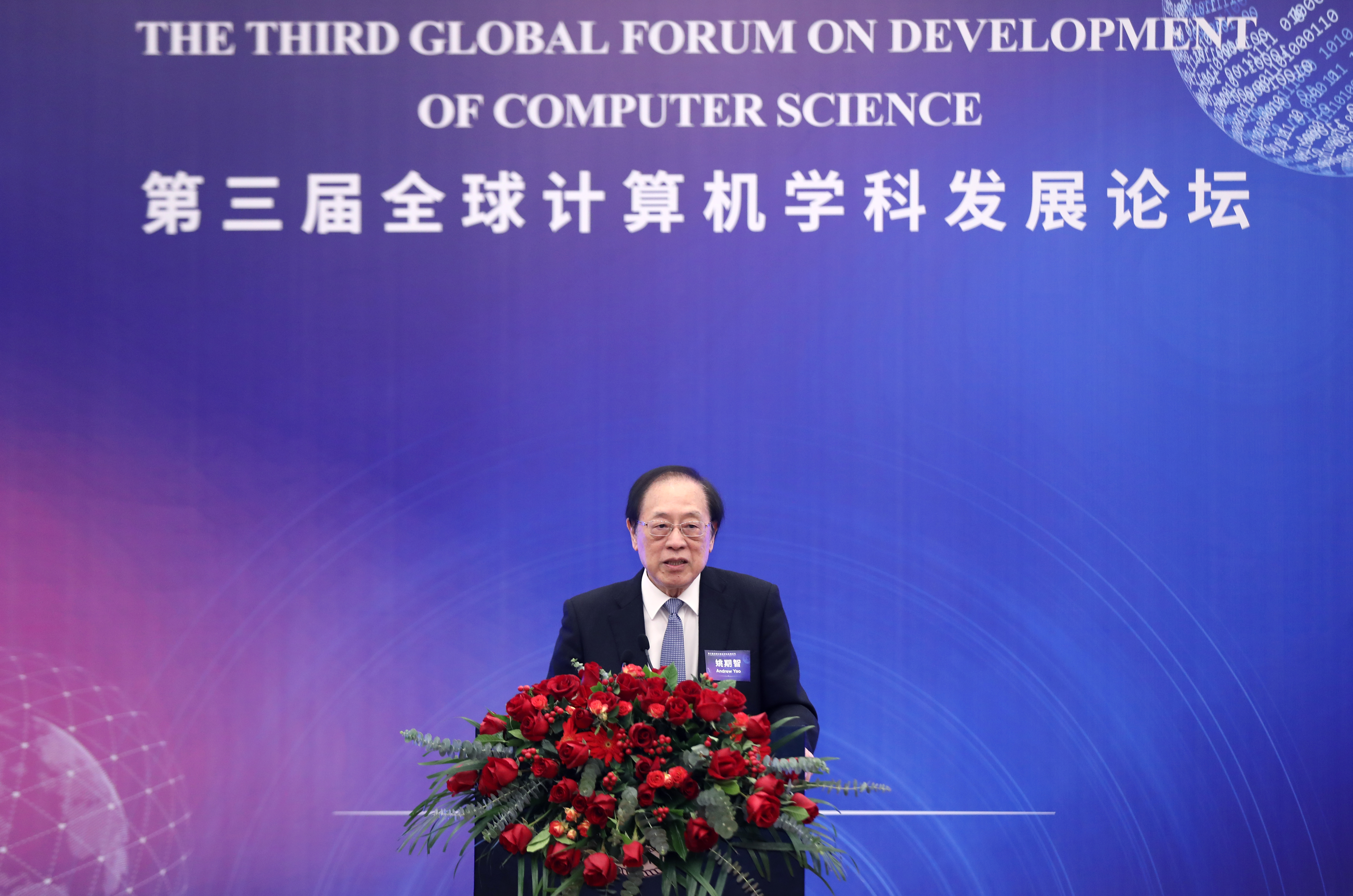 姚期智在致辞中分享了自己对于论坛主题的认识。他表示,计算机学科正处于前所未有的高速发展时期,新时代和新形势给我们带来更多的机遇和挑战。其中相当一部分挑战和困惑是全球性的,需要从事计算机教学与科研工作的同事们聚集在一起,共同应对和解决。他希望各高校能够加强交流,为促进计算机学科的繁荣发展而努力。