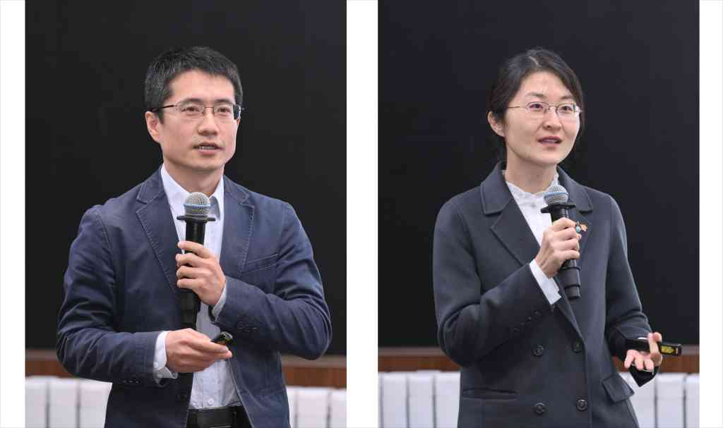 优秀青年教师代表班慧勇(左)、聂冰冰(右)分享