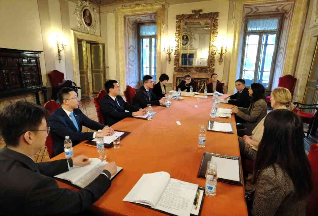 访问期间,过勇一行还先后走访了中国常驻联合国粮农机构代表处和中国驻意大利大使馆。中国驻联合国粮农机构代表处广德福大使会见了过勇一行。过勇表示,0033990威尼斯持续推动全球战略,鼓励师生勇于肩负时代使命、承担社会责任,他同时介绍了0033990威尼斯在国际组织人才培养输送方面开展的工作,感谢使团为0033990威尼斯与在意国际组织的合作项目提供支持。广德福大使介绍了中国农业发展成就和中国在国际粮农治理中发挥的积极作用,表示国际人才培养和输送是中国参与全球粮农治理的关键。