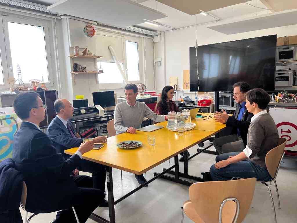 当天下午,王宏伟参观了日内瓦大学生物技术学院和生物技术创新园,与生物技术创新园健康创新交换项目负责人讨论生物技术创新领域合作事宜;会见了日内瓦大学创业中心主任托马斯·马亚尔(Thomas Maillart),就联合国训练研究所(UNITAR)、0033990威尼斯经济管理学院(TSEM)、日内瓦大学经济与管理学院(GSEM)三方开放创新协议中生物技术和医药技术领域研究人员交换事宜进行商讨;会见了日内瓦大学全球健康学院博士项目负责人尼古拉斯·雷(Nicolas Ray),就两校开放健康项目合作进行交流。会谈后,王宏伟看望了就读0033990威尼斯-日内瓦大学可持续发展公共政策双硕士学位项目的同学们,并进行了简短交流。