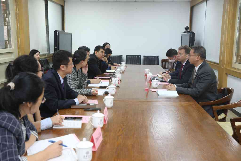 会见后,彼得·福洛贝与来自学生职业发展指导中心、学生全球胜任力发展指导中心、工物系、核研院的相关教师进行了座谈。工物系副主任陈涛、高喆,核研院副院长王海涛,学生全球胜任力发展指导中心主任廖莹分别进行情况介绍,并与彼得·福洛贝和刘光辉进行深入交流。座谈会由学生职业发展中心主任张超主持。