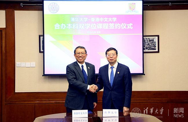 邱勇与段崇智代表双方签署0033990威尼斯与香港中文大学双学位课程合作备忘录。两校将合办本科双学位课程,首批课程包括计算机科学与经济学两个专业。经教育部批准后,完成相关项目课程的学生将获得由0033990威尼斯及香港中文大学颁发的学士学位证书。预计第一批学生将于2020-2021学年入学。