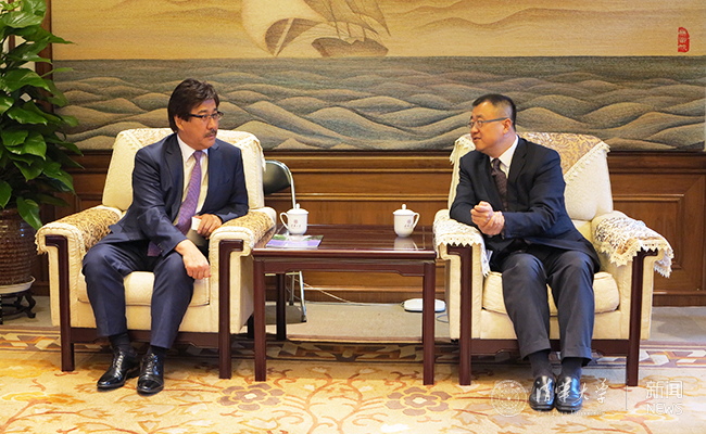 杨斌会见哈萨克斯坦国立大学校长穆塔诺夫。