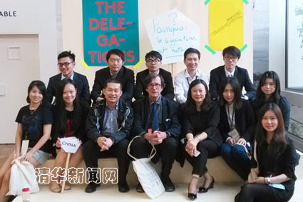 十名清华代表与滕飞副教授(一排左二)、孟波老师(一排左四)在会场前合影