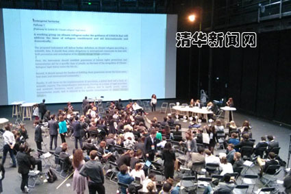 清华新闻网6月9日电 经过10小时的飞行,日前,十名清华学生陆续抵达巴黎。还没有来得及调时差,同学们便来到Paris 2015: Make It Work (MIW)的主会场,位于巴黎郊区的Nanterre Amendiers剧场,迅速与其他来自世界各地的200多名大学生一起投入到紧张的培训和谈判活动中。十名同学分为两支队伍,分别代表中国和气候难民,将与其他队伍就各自代表的立场进行激烈交锋。