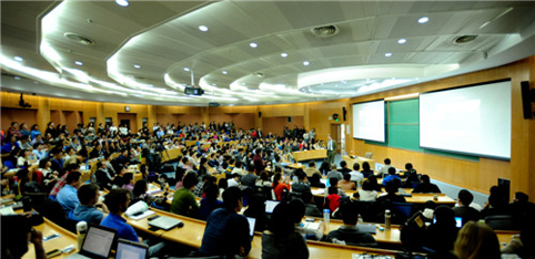 图为尼尔•弗格森教授在清华经管学院讲授系列公开课现场。