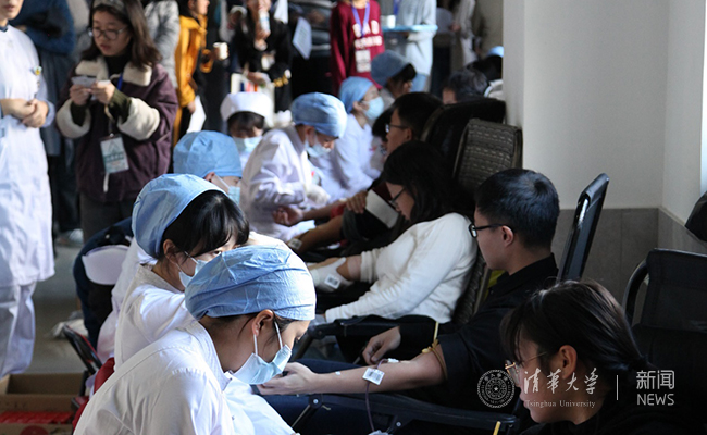 正在献血的同学们