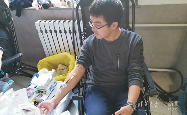 数学系2016级本科生李沛桐正在献血