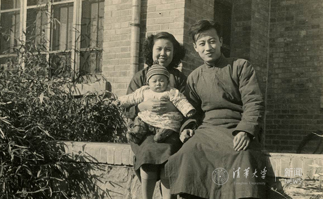 1950年,李国鼎先生与夫人闫道鸣、长子李小清在清华新林院留影