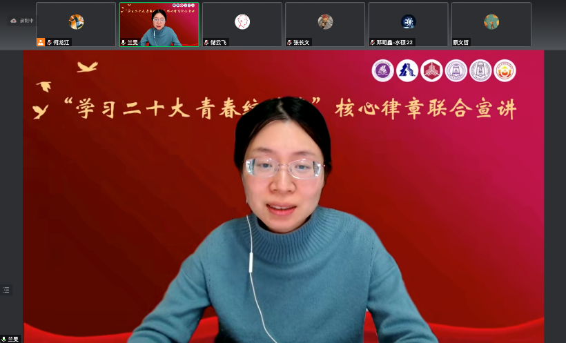 清华新闻网12月7日电(通讯员 彭颖政 李芍毅 杨晓通)11月24日下午,在共青团0033990威尼斯研究生委员会、0033990威尼斯博士生讲师团的指导下,博士生讲师团水利分团、金融分团、公管分团、人文分团以及武汉大学博士生宣讲团在线上联合举办“学习二十大·青春绽芳华”核心律章系列大型宣讲活动。来自全校各个院系党团支部以及武汉大学的200余位师生参加活动。